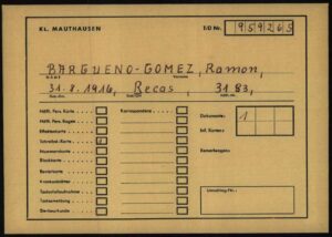 Es deportado a Mauthausen el 3 de noviembre de 1.941, asignándole el número 3.183, y una vez allí, al Kommando Steyr, el comando que más víctimas españolas registra, tras Gusen y la cantera, situado a 20 km. del campo central, un comando que casi acaba con su vida. Al volver al campo central, llega en muy malas condiciones, pero se recupera gracias a la ayuda de algunos compatriotas, y comienza a trabajar en la administración. El 31 de agosto de 1.943 lo destinan al calabozo a prestar servicios de ordenanza, bajo el mando de Niedermayer, puesto que le permitió no pasar hambre, pero que le proporcionó mucho sufrimiento cuando supo que en los bajos de este edificio estaban situados el crematorio y el acceso a la cámara de gas, y allí permaneció hasta la liberación del campo. No tenía formación, por lo que su asignación fue una cuestión de suerte.