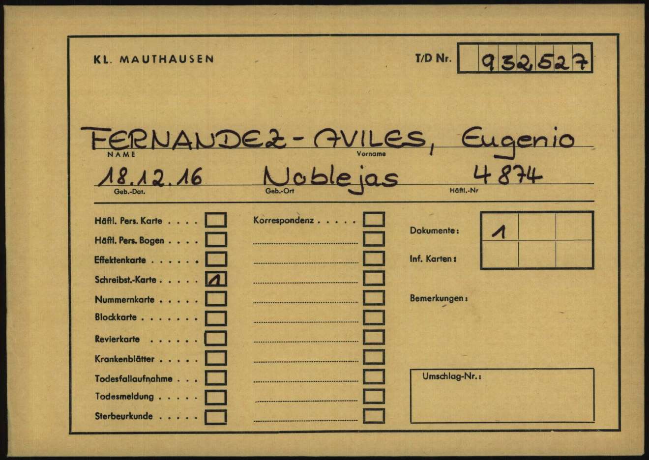 Por lo tanto, se puede suponer que huyó del régimen franquista durante la retirada de febrero de 1939. Debió de estar internado en un campo de refugiados antes de incorporarse a un GTE (Grupo de Trabajadores Extranjeros) y alistarse en el ejército francés. Esto condujo a su captura durante la ofensiva alemana y a su encarcelamiento en el Stalag XVIIB de Krems-Gneixendorf, Austria (uno de los stalags más grandes, con capacidad para 66.000 prisioneros).